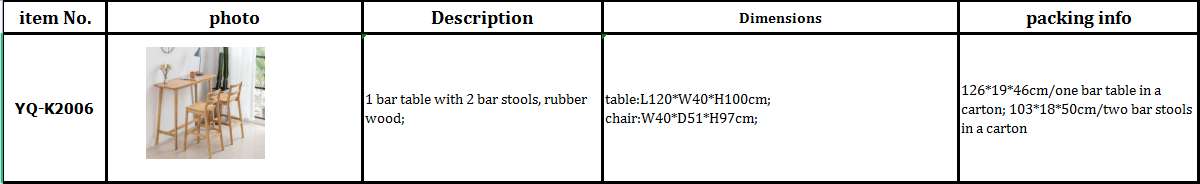 We have two our own factory. So we can offer the price and Custom Ensemble de table à manger de bar en bois d'intérieur, tabouret de bar avec meubles de table haute YQ-K2006 directly.