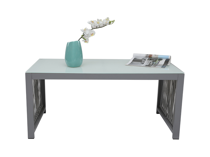 | Spécification | cadre en aluminium avec corde tissée, 4 pièces au total ; causeuse : L70*W132*H69cm, 1PC chaise simple : L70*W70*H69cm, 2PCS table basse : L100*W50*H46cm, verre blanc trempé 5mm, 1PC |
