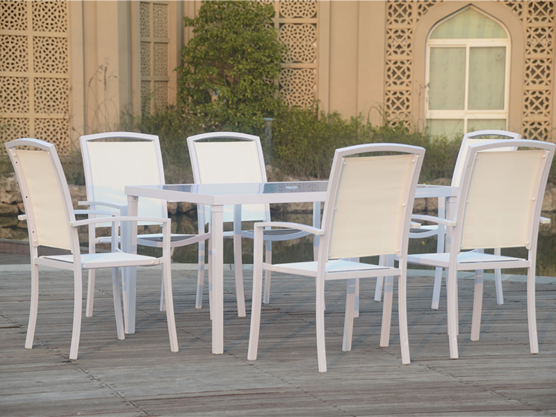 | Table en rotin PE en tube d'aluminium : 142 × 92 × 72 cm, verre de couleur blanc trempé de 5 mm avec un trou parapluie au milieu ; Chaise : 65×57×96CM, tissu textilène 2×1 | 144×8,5×95cm/1 table dans un carton ; Chaises 36 pièces empilées par palette | 160ENSEMBLES |