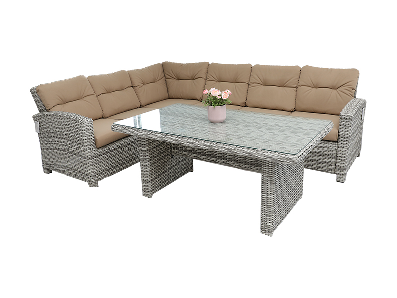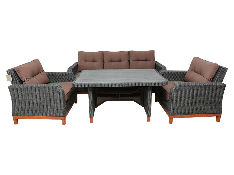 | tube d'aluminium demi-rond en rotin PE, coussin d'assise de 10 cm avec éponge à l'intérieur et coussin de dossier de 10 cm avec rembourrage en fibres à l'intérieur, tissu 230 g ; chaise trois places : L80*W190*H77CM,1PC ; Chaise 3 places à accoudoir unique : L80*W160*H77CM, l'accoudoir est KD, 1PC ; table : L140*W80*H63CM, verre transparent trempé 5 mm, KD, 1 PC | 142,5*18*83 cm/une table dans un carton ; 192*99*83 cm/autres dans un carton | 36ENSEMBLES |